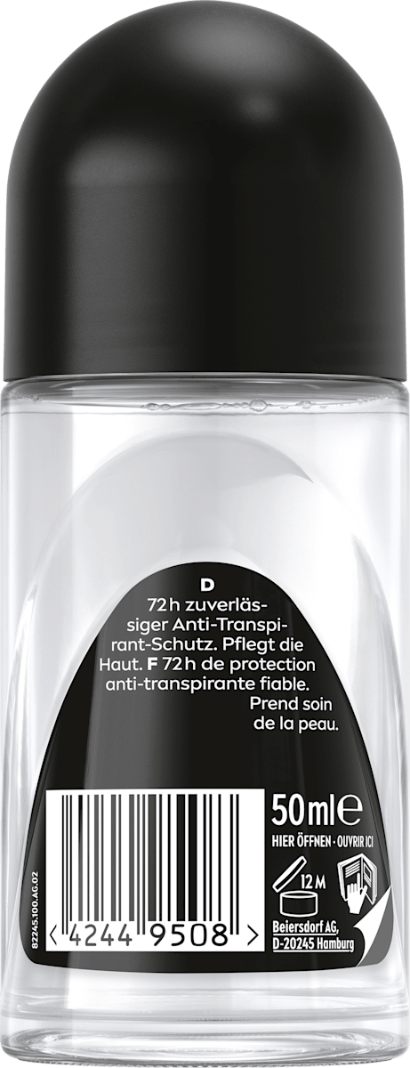 Le déodorant roll-on Black & White est le compagnon idéal de tout ce qui s'accorde avec l'importance d'un aspect frais. Grâce à sa technologie anti-taches unique et brevetée, qui empêche de manière fiable les résidus blancs sur les vêtements noirs et le jaunissement des vêtements blancs. Le roll-on offre non seulement une protection complète contre la transpiration et les odeurs, mais il est également égal à la peau. Doté d'une protection anti-transpirante fiable pendant 72 heures, il est efficace contre les autres désagréables et crée une agréable sensation de fraîcheur qui dure la journée.