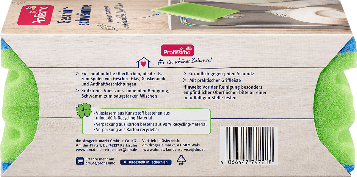 Les éponges à vaisselle Profissimo nettoient en douceur les surfaces sensibles. Les anti-rayures non tissés assurent un nettoyage en douceur et laissent la vaisselle propre. Le plus, l'effet est idéal pour apprendre et réduire les revêtements en verre, vitrocéramique et anti-adhésifs.