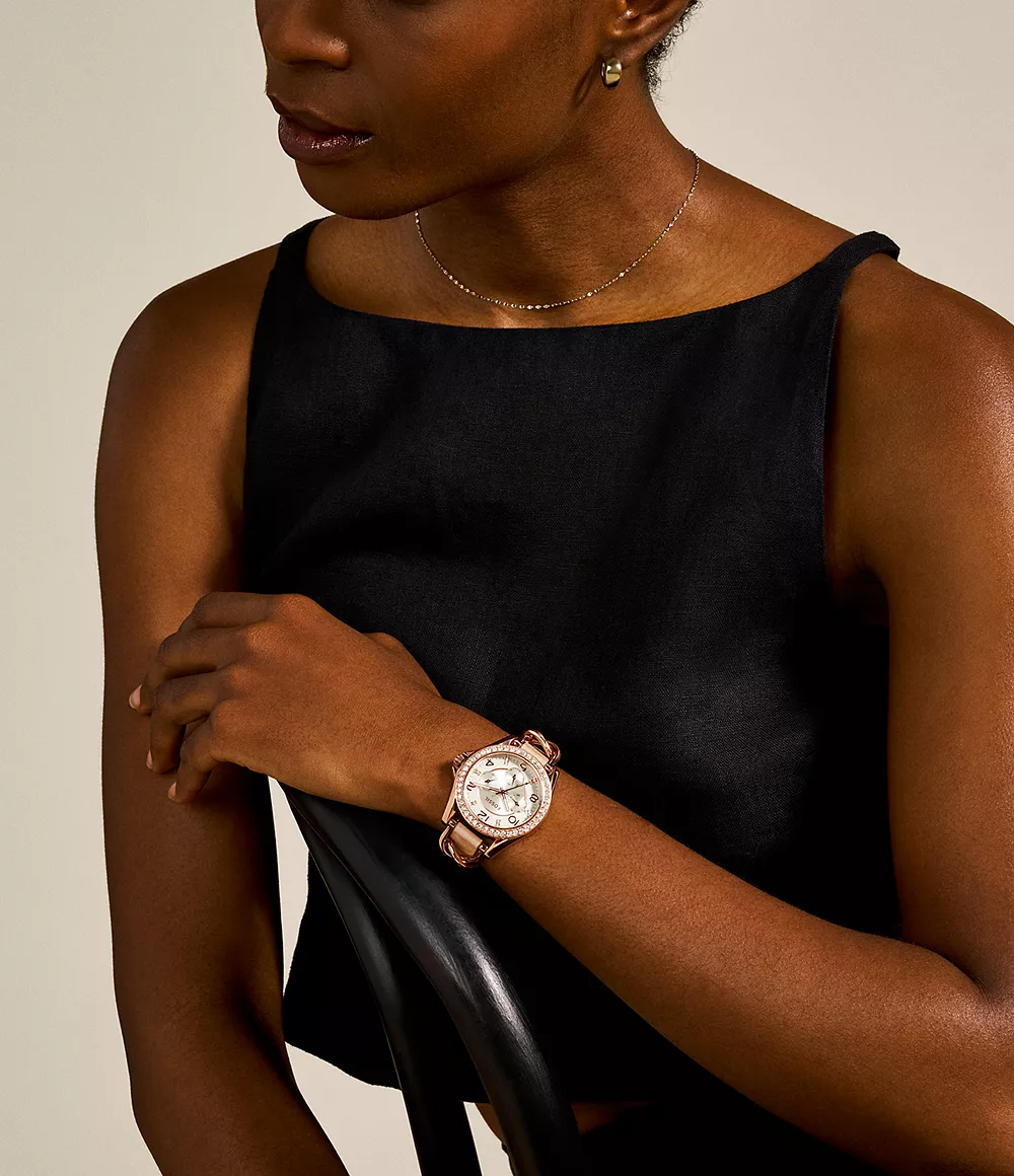 Montre Riley multifonction en acier inoxydable et en cuir Doré rose et ivoire